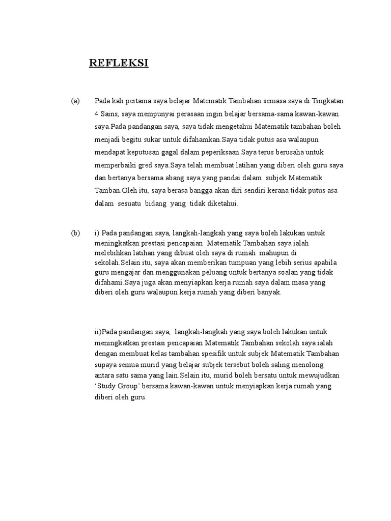 Objektif Penutup Refleksi Untuk Kerja Projek Matematik Tambahan Pdf